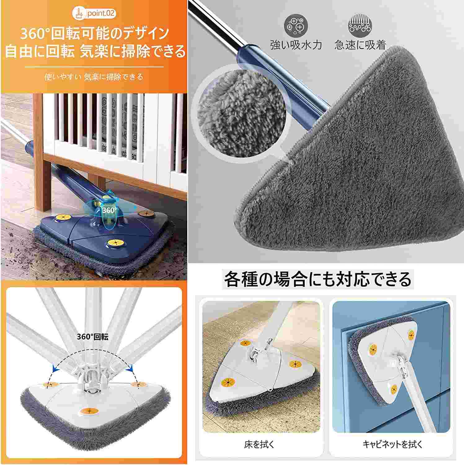 125cmの伸縮ポール付きで、高い場所や手の届きにくい場所も簡単に掃除できます。